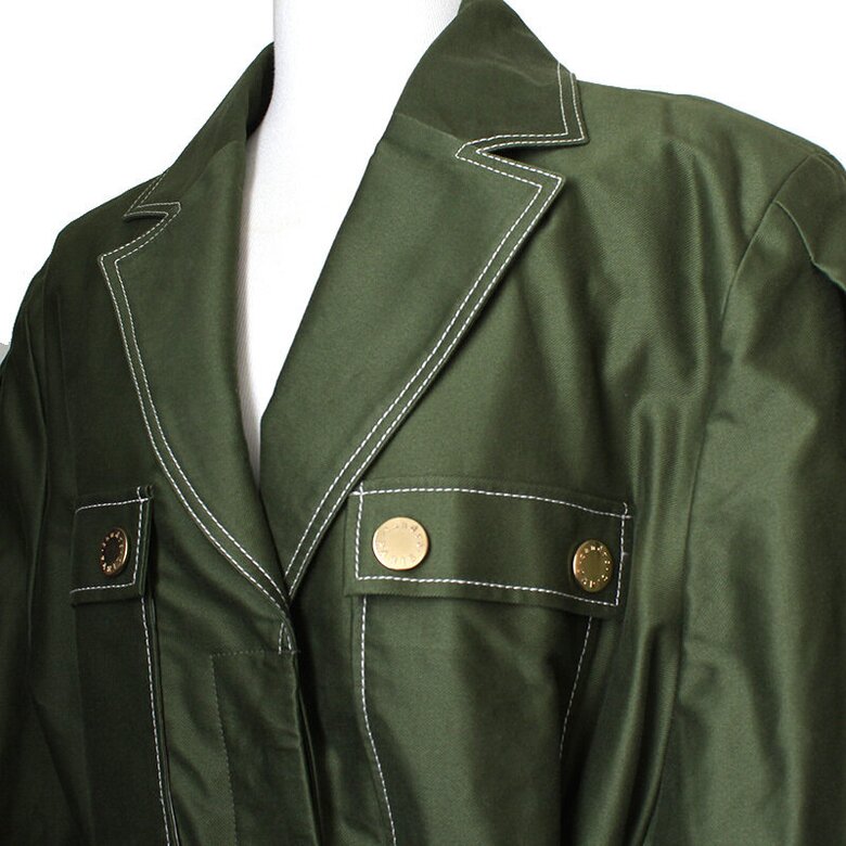 트렌디한 그린 색감과 화이트 스티치의 조화가 상쾌한 느낌을 선사하는 매력적인 자켓입니다.