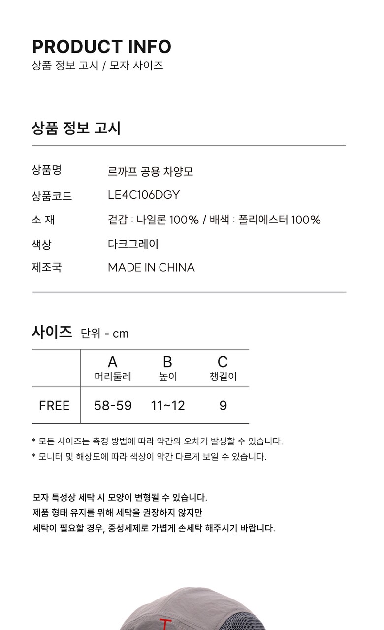 르까프 공용 차양모 다크그레이 LE4C106DGY