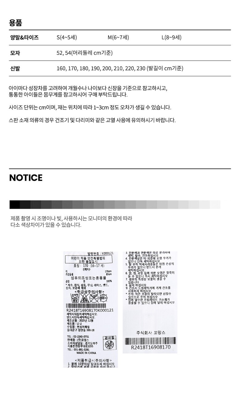 상품불량에 의한 반품, A/S, 품질보증 및 피해보상 등에 관한 사항은 소비자 분쟁해결기준(공정거래위원회 고시) 구매자가 미성년자인 경우에는 상품 구입시 법정대리인이 동의하지 아니하면 미성년자 본인 또는 법정대리인이 구매취소 할 수 있습니다. |