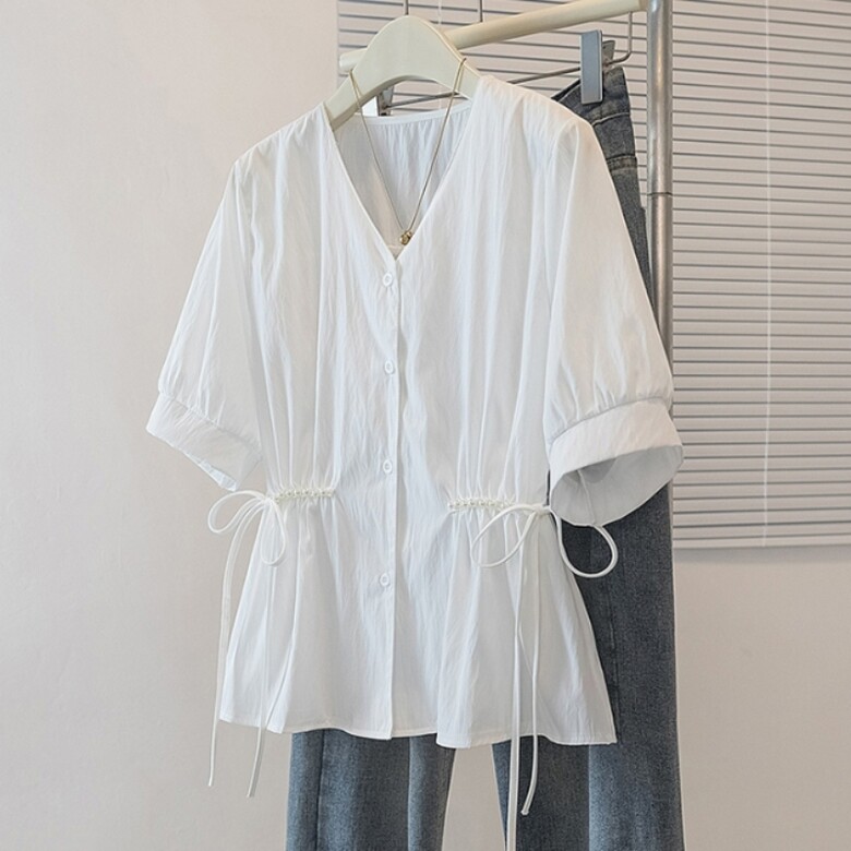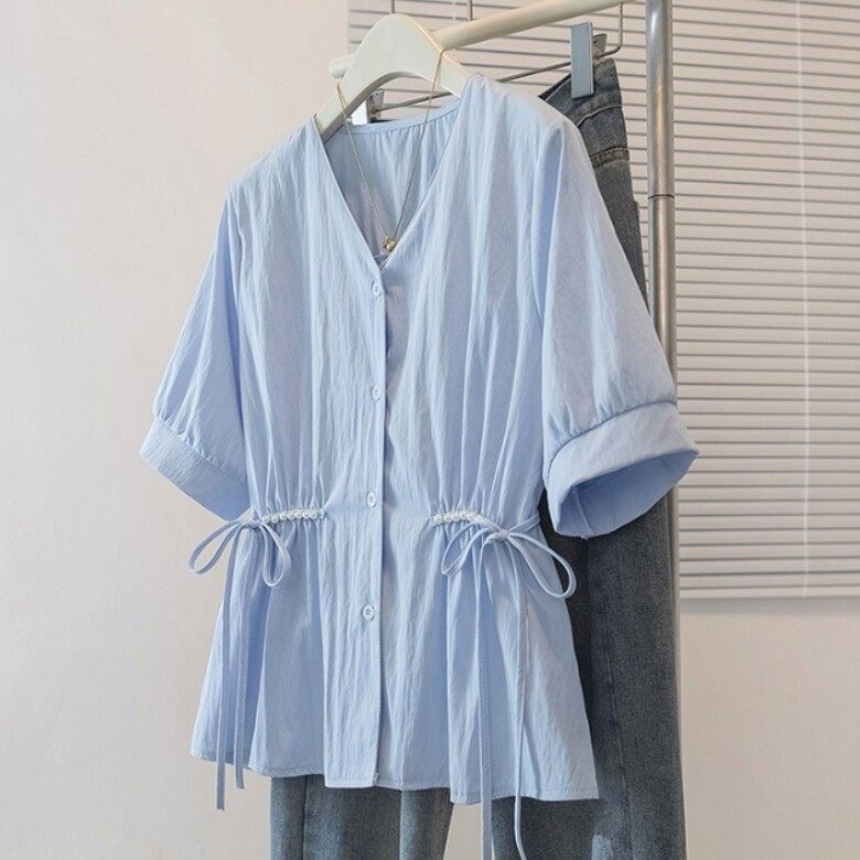 멜첸 허리 커버 V넥 반팔 셔츠 3color_250521_HN160