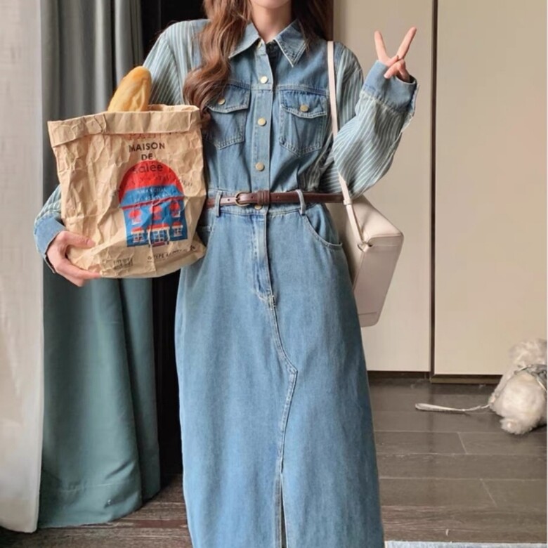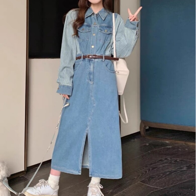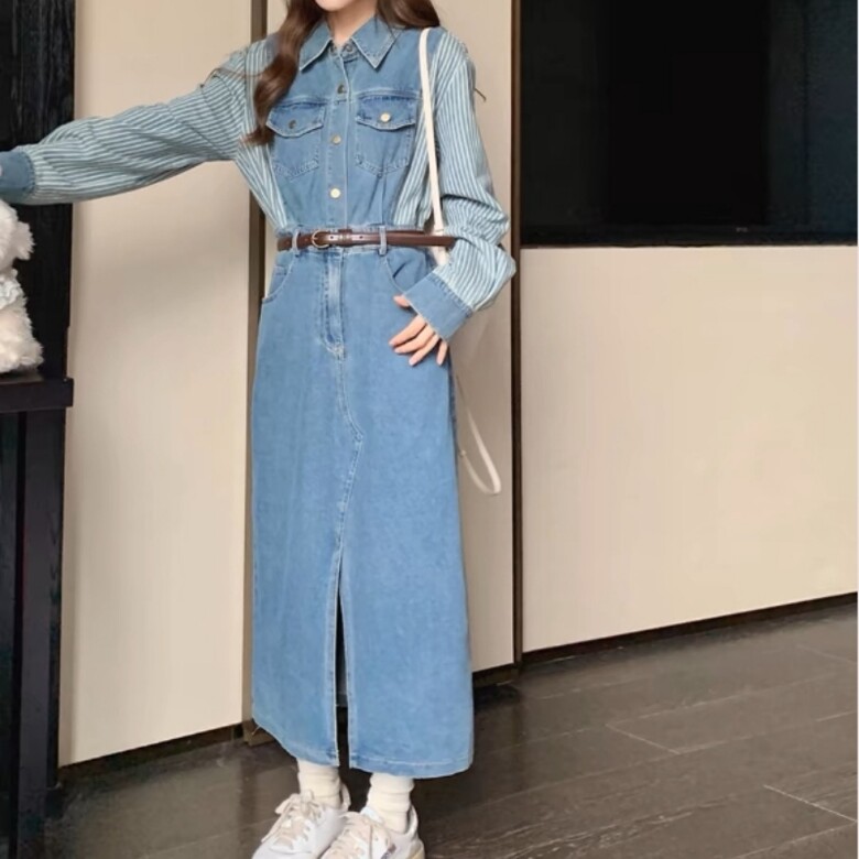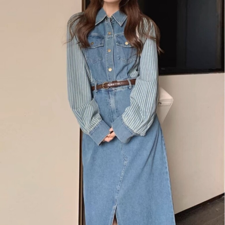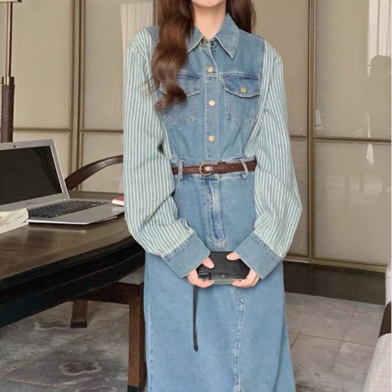 넬렌드 스트라이프 셔츠 데님 원피스_250521_HN370