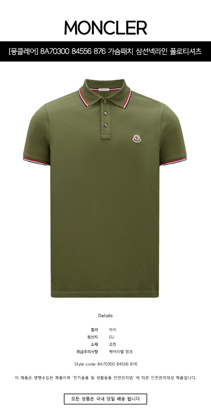 [명품] 8A70300 84556 876 가슴패치 삼선넥라인 폴로티셔츠 카키 남성 티셔츠 /