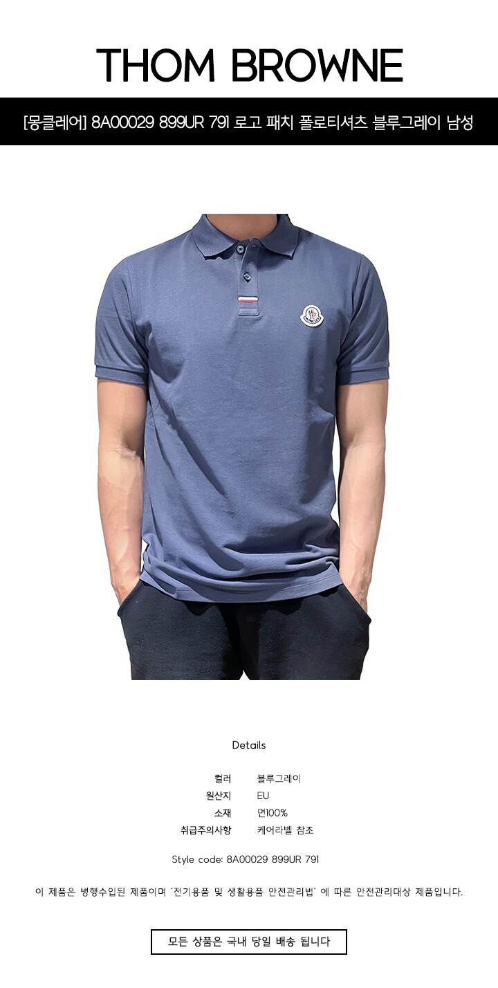 [명품] 8A00029 899UR 791 로고 패치 폴로티셔츠 블루그레이 남성 티셔츠 / TSH