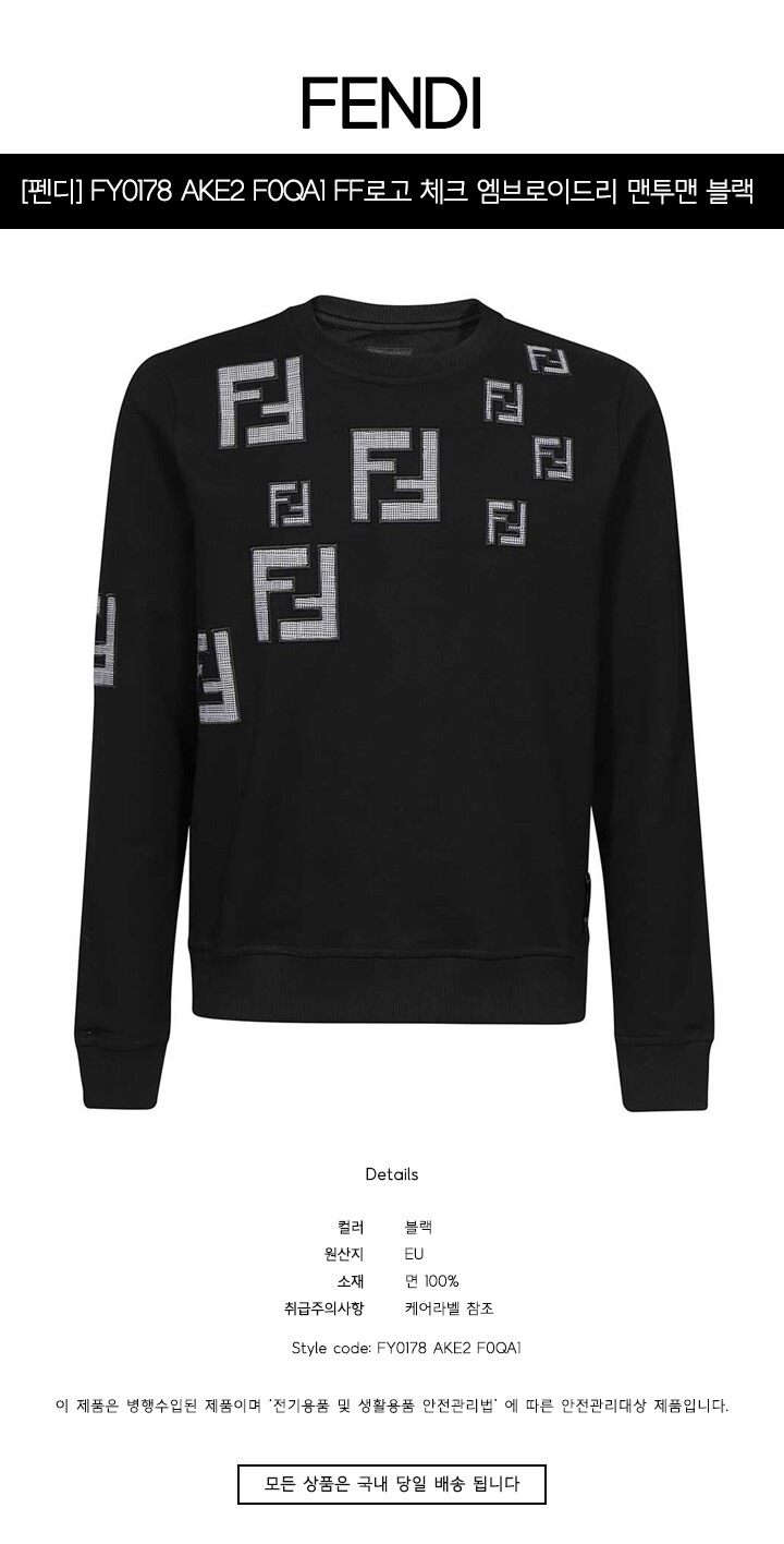 [명품] FY0178 AKE2 F0QA1 FF로고 체크 엠브로이드리 맨투맨 블랙 남성 맨투맨 /