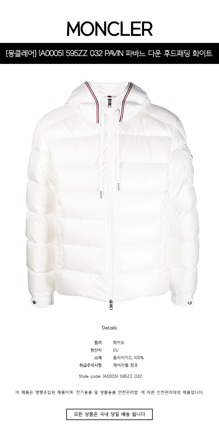 [명품] 1A00051 595ZZ 032 PAVIN 파바느 다운 후드패딩 화이트 남성 패딩 /