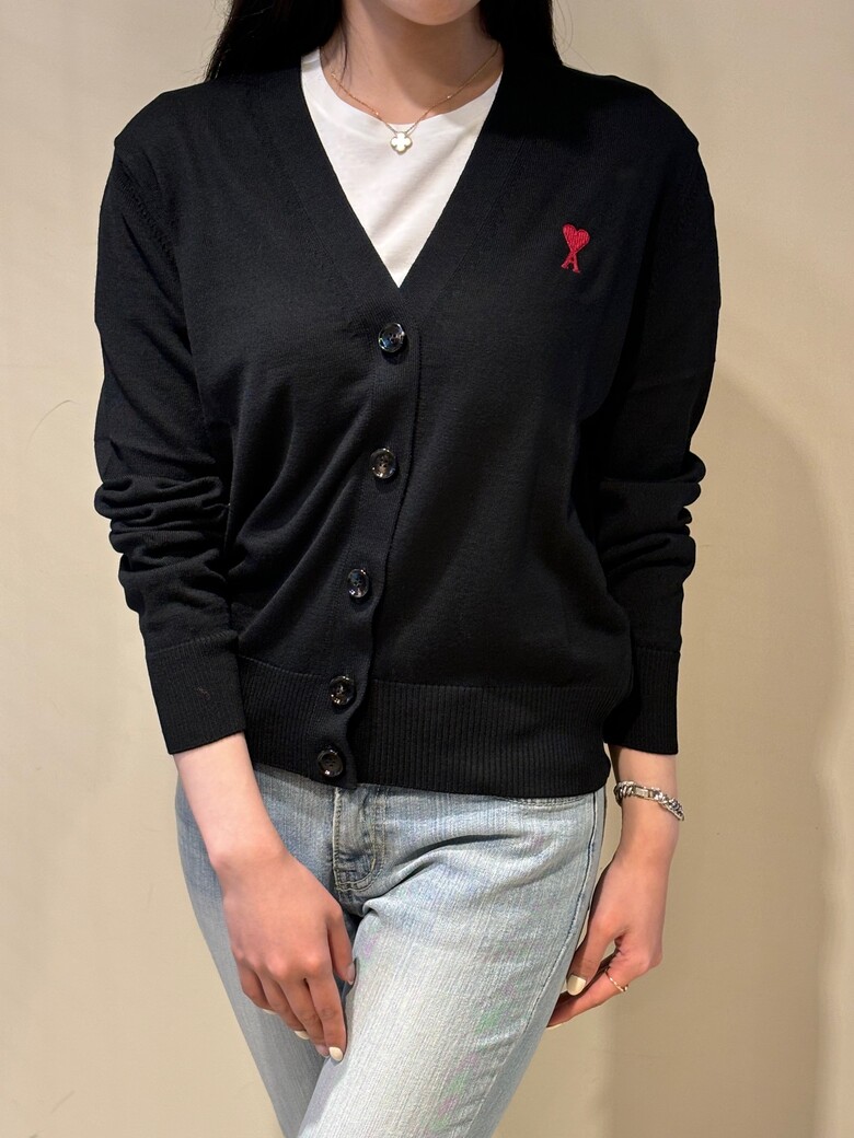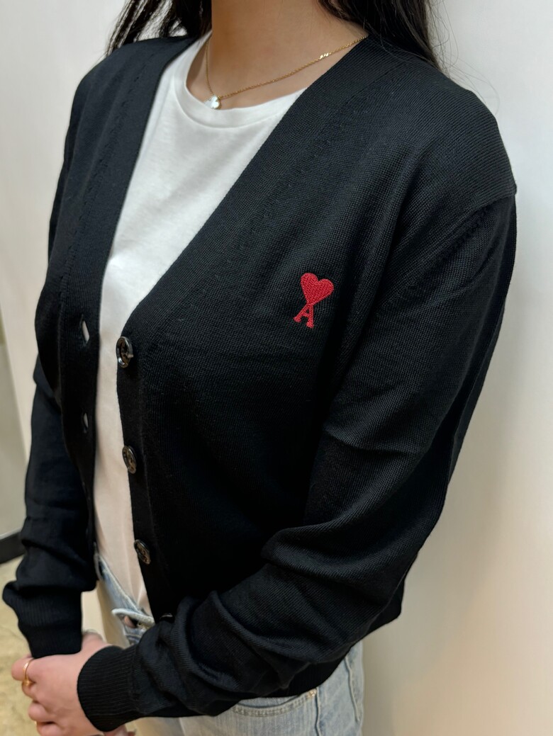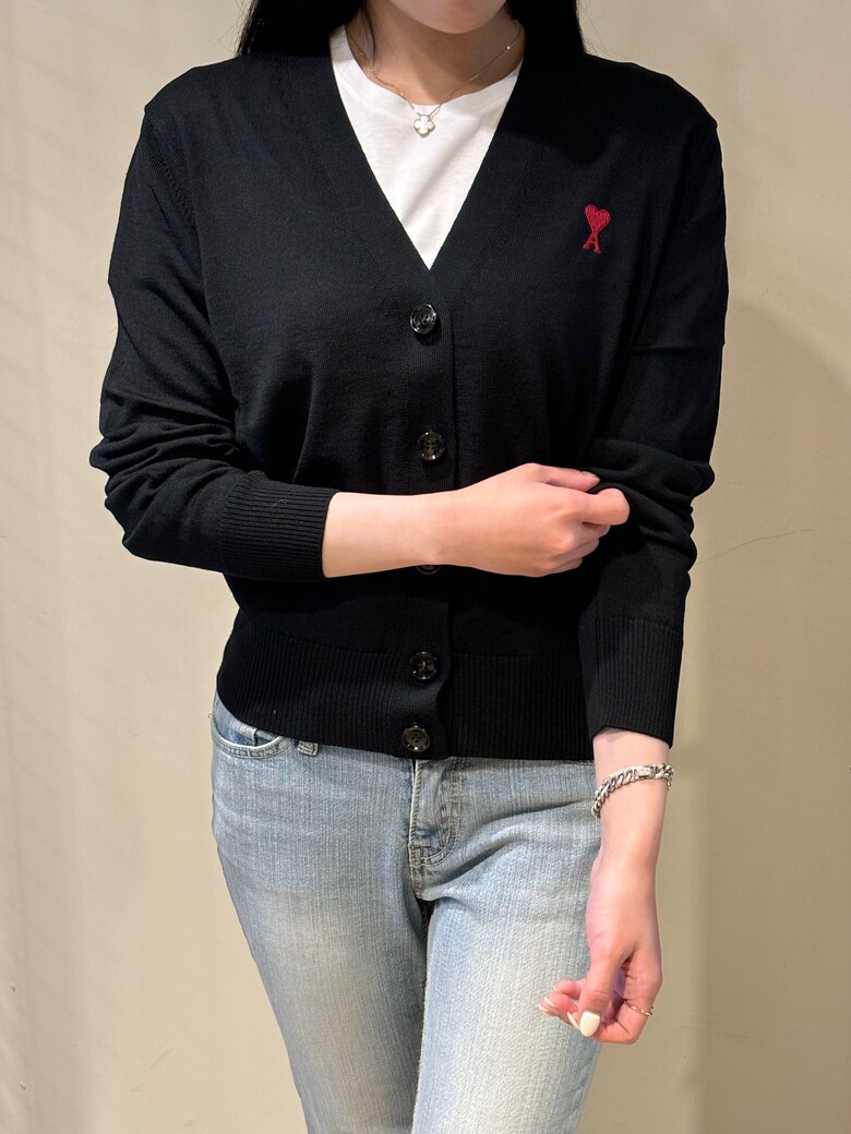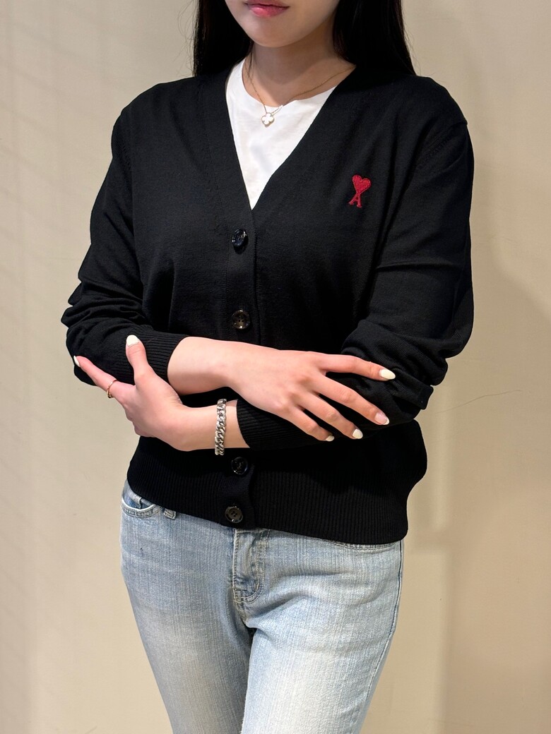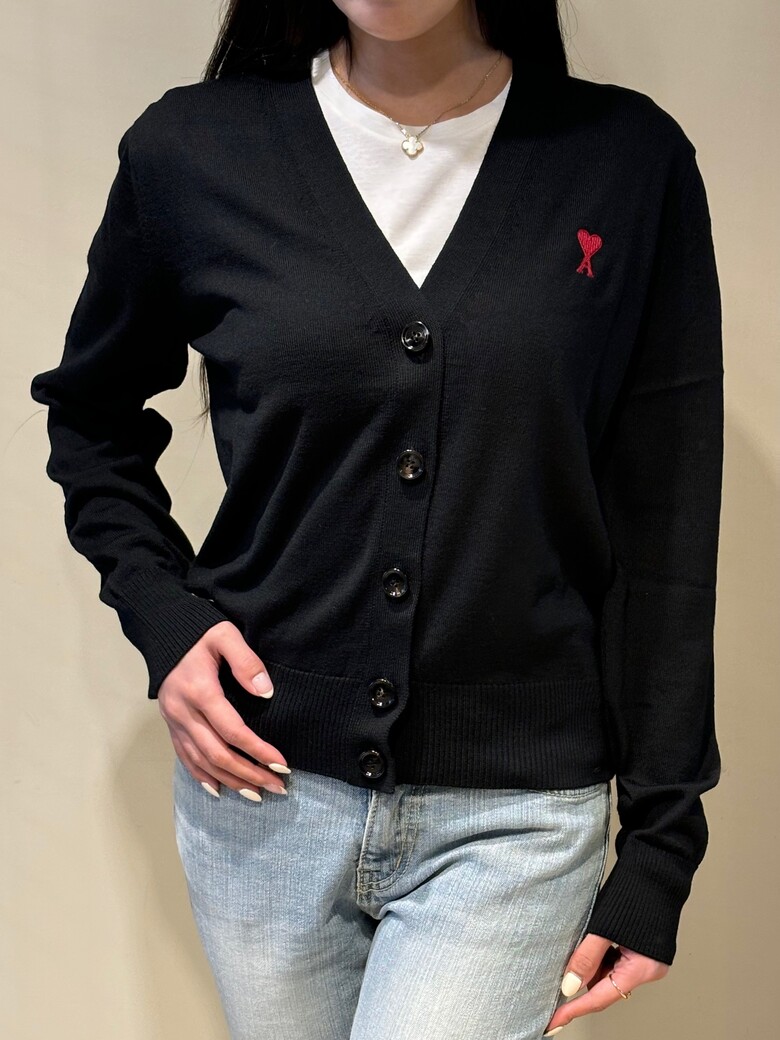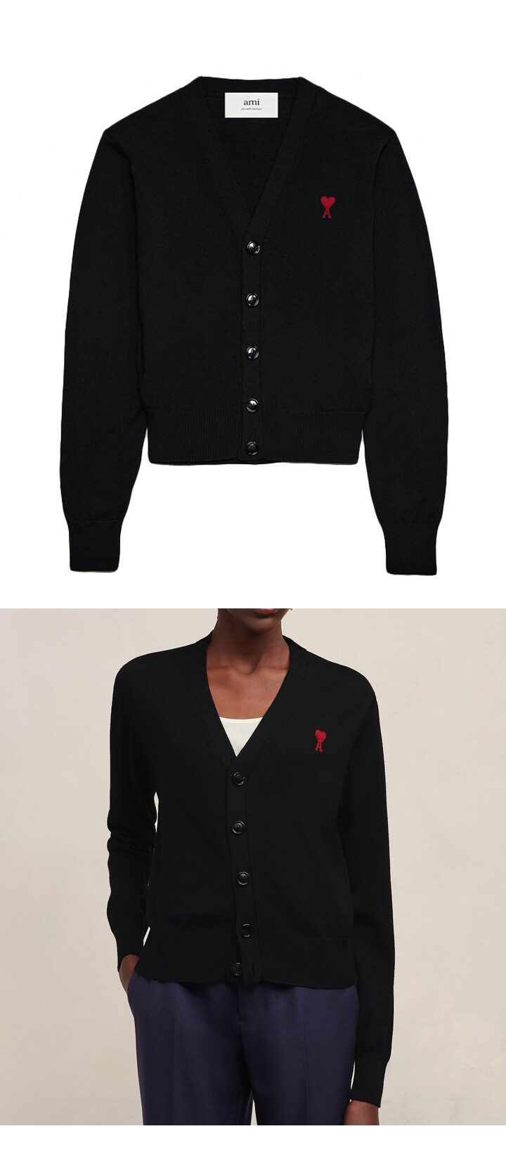 - #리본즈코리아 #BFFKC111.KN0025001 #[명품] #BFFKC111.KN0025 #001 #하트자수 #브이넥 #가디건 #블랙 #여성 #자켓 #/ #의류 #니트/가디건