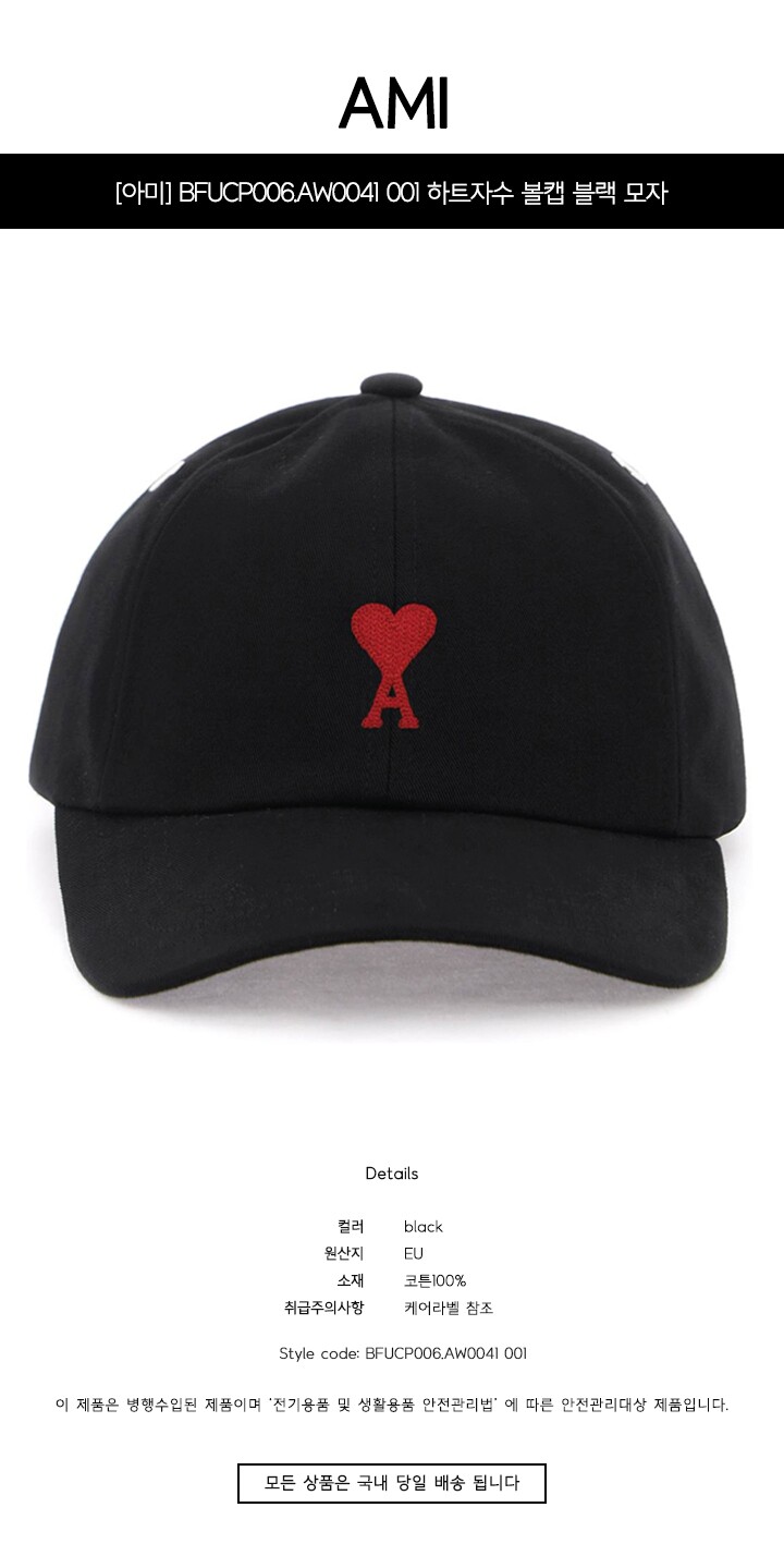 - #리본즈코리아 #BFUCP006.AW0041001 #[명품] #BFUCP006.AW0041 #001 #하트자수 #볼캡 #블랙 #모자 #/ #TFS #공용 #패션잡화 #야구모자