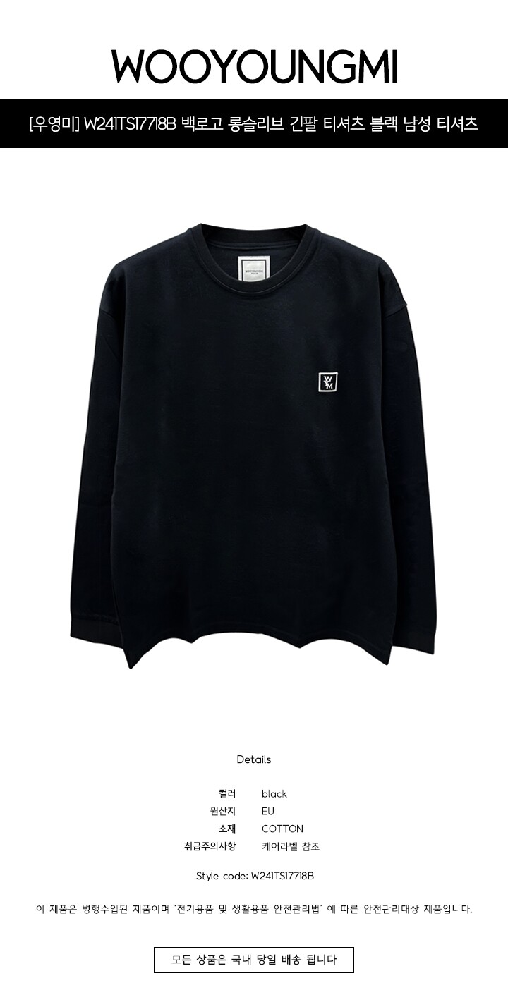 [명품] W241TS17718B 백로고 롱슬리브 긴팔 티셔츠 블랙 남성 티셔츠 / THW
