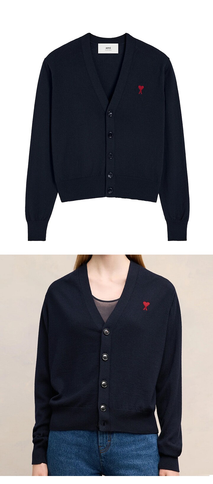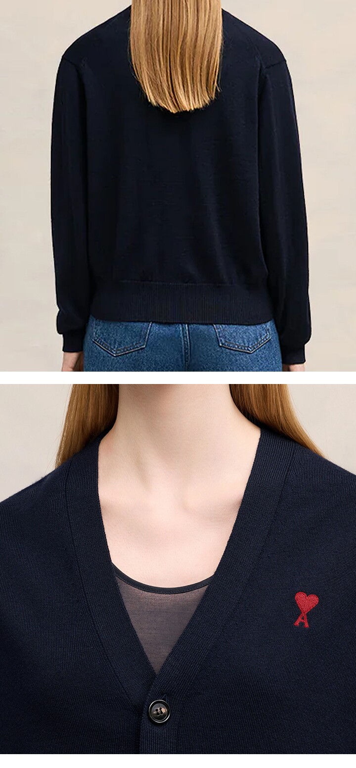 - #리본즈코리아 #BFFKC111.KN0025430 #[명품] #하트자수 #브이넥 #가디건 #블루 #뉘 #여성 #자켓 #BFFKC111.KN0025 #430 #/ #의류 #니트/가디건