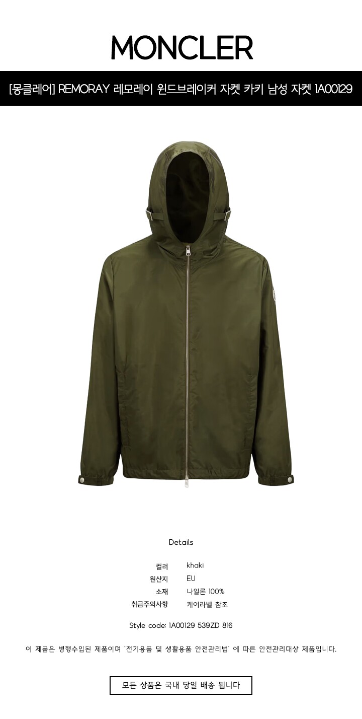 - #리본즈코리아 #1A00129539ZD816 #[명품] #REMORAY #레모레이 #윈드브레이커 #자켓 #카키 #남성 #1A00129 #539ZD #816 #/ #의류 #아우터 #캐주얼자켓