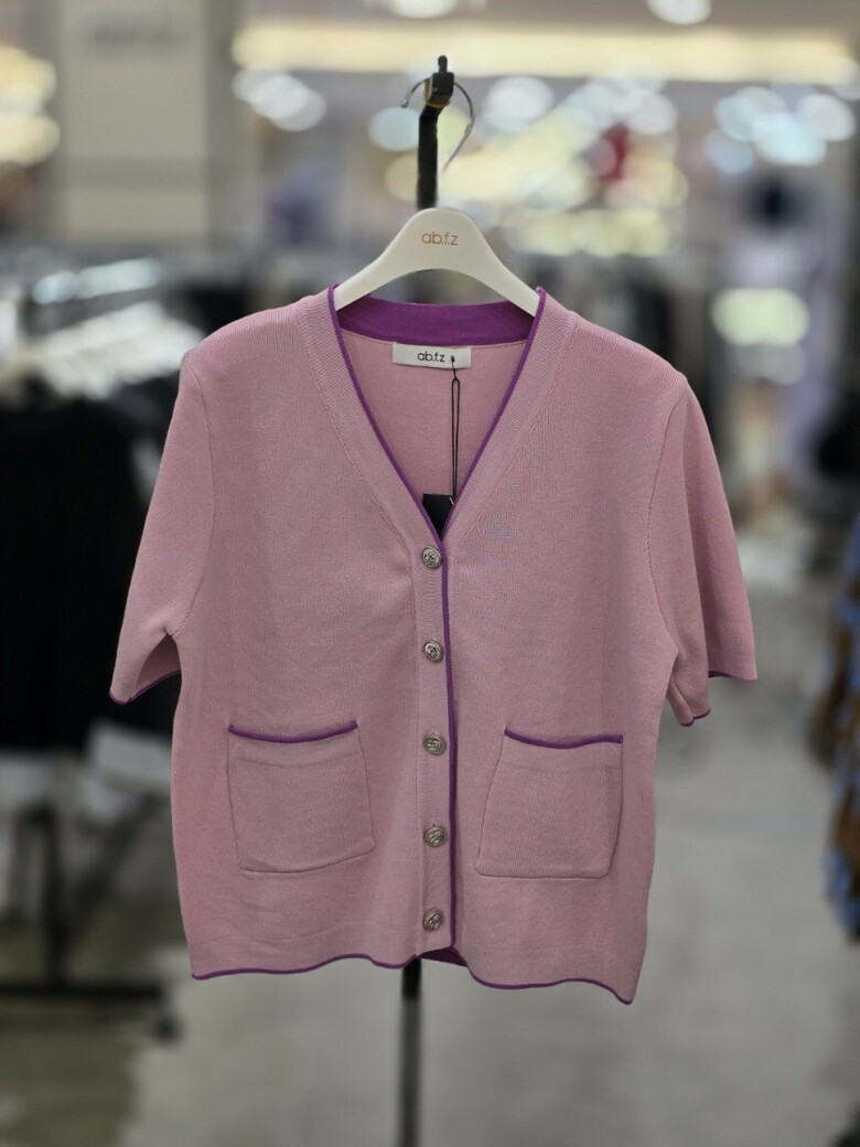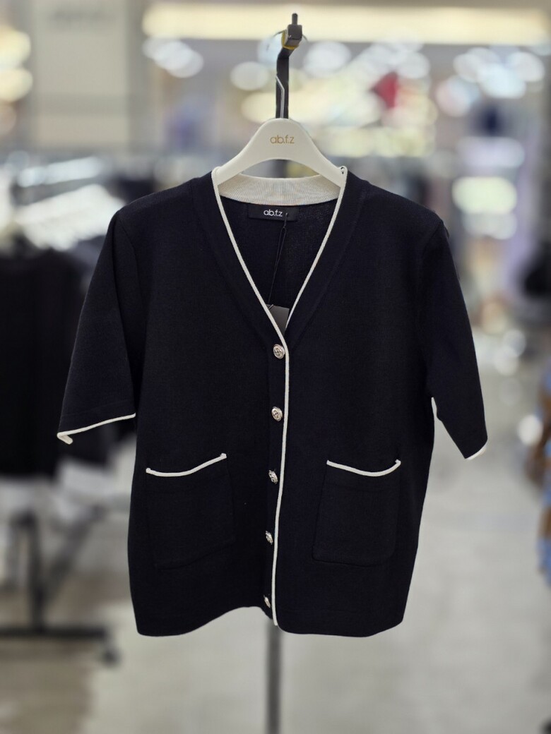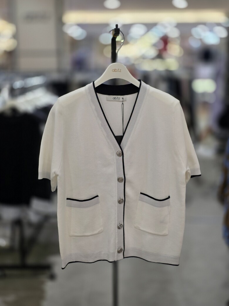 [ab.f.z] 브이넥 배색 니트가디건 MAZ2NY40