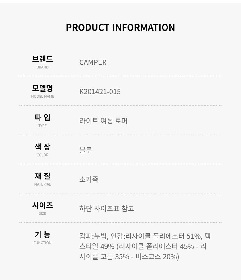 | 4. 제조사 | 캠퍼/MACHO-병행수입 |