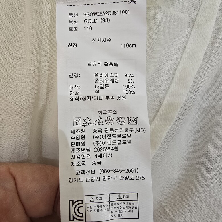 | 1. 제품 소재 (섬유의 조성 또는 혼용률을 백분율로 표시, 기능성인 경우 성적서 또는 허가서) | 상품상세참조 |