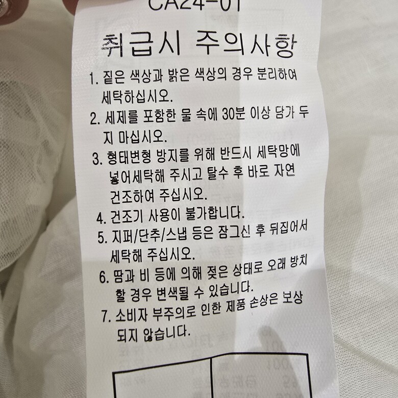 | 6. 세탁방법 및 취급시 주의사항 | 상품상세참조 |