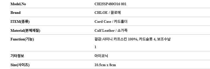 [명품] 끌로에 CH25SP480O16 001 아이코닉 카드지갑