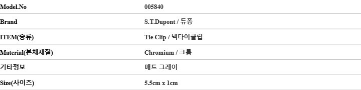 [명품] 듀퐁 005840 매트 그레이 넥타이클립