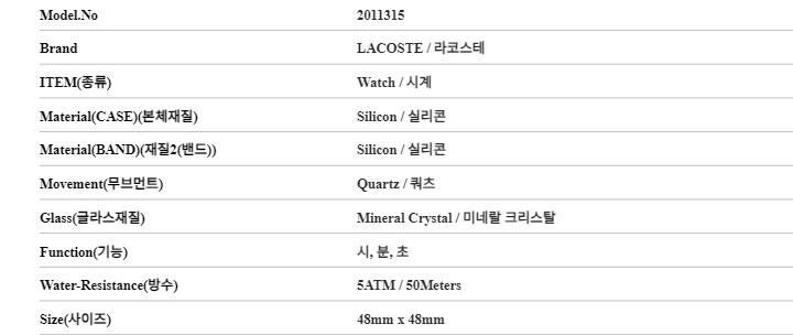 | 6. 취급시 주의사항 | 상품상세 참조 |