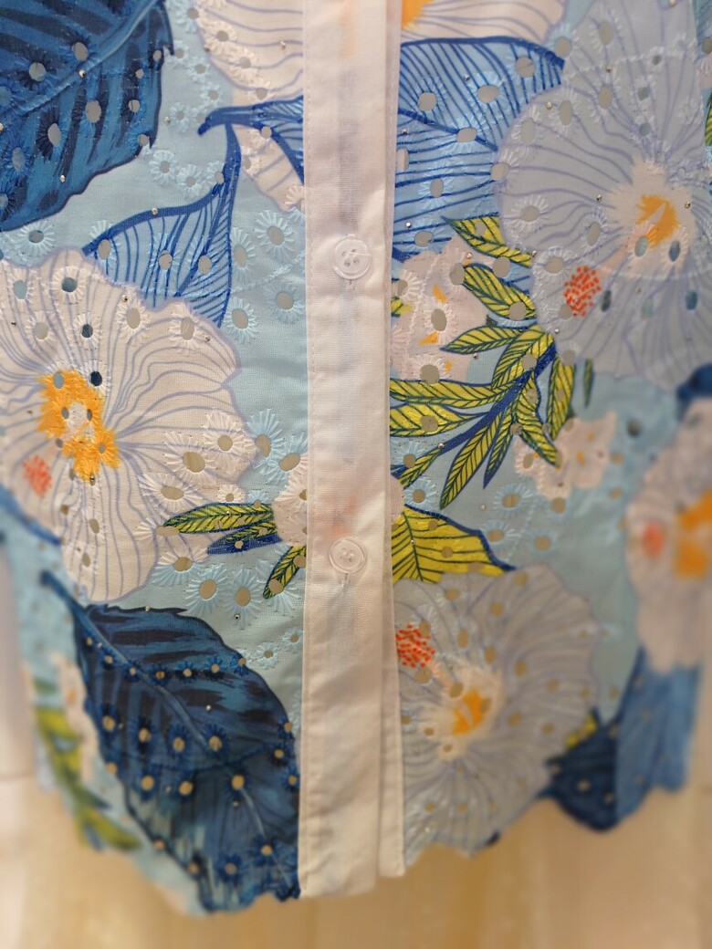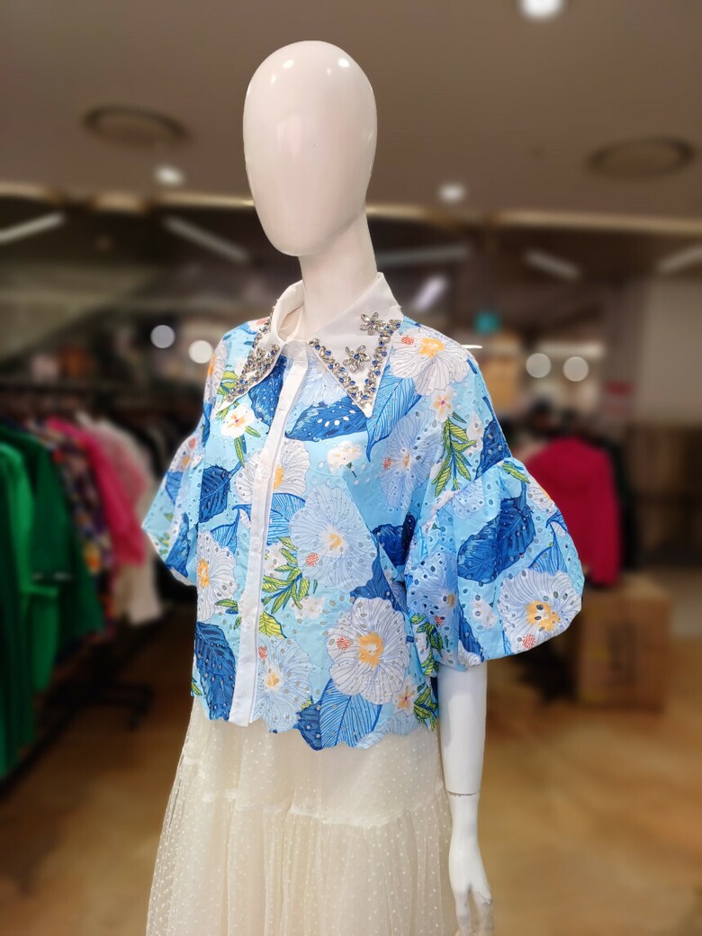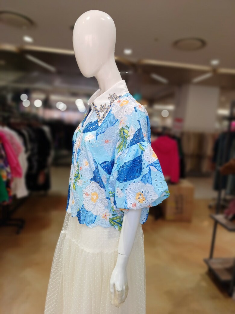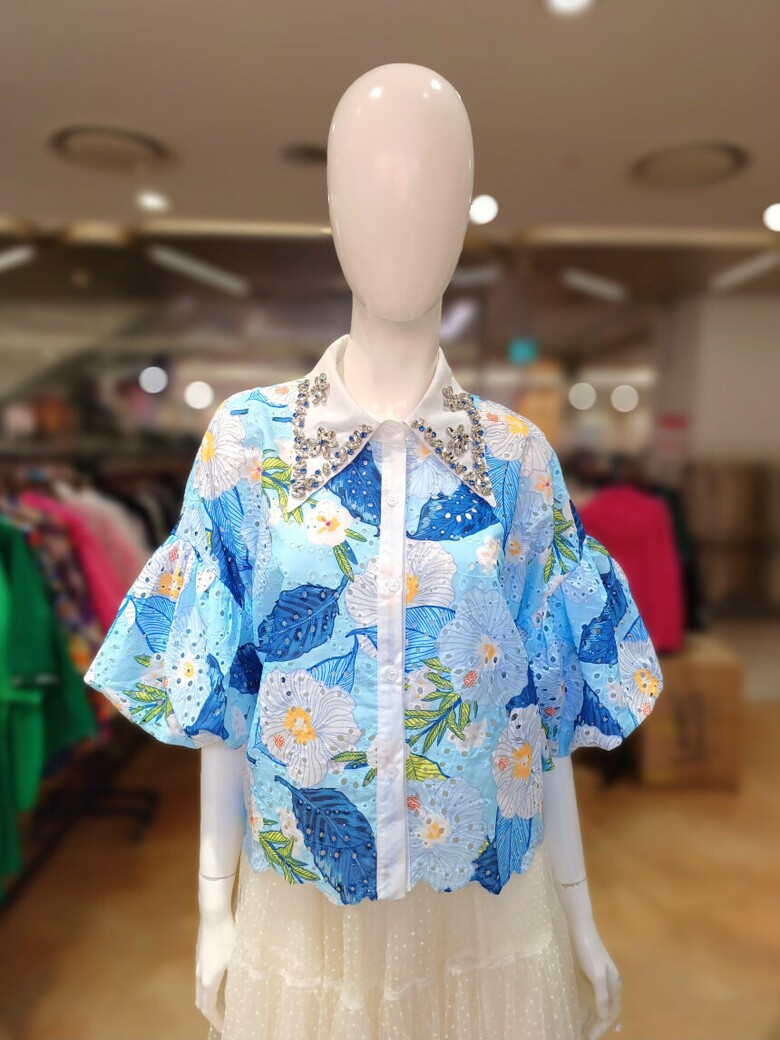 르니앤맥코이 자수펀칭 카라보석 5부소매 블라우스MM09BL703