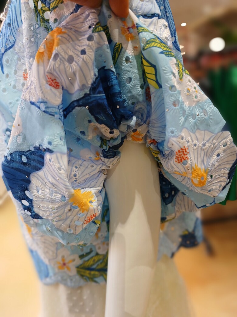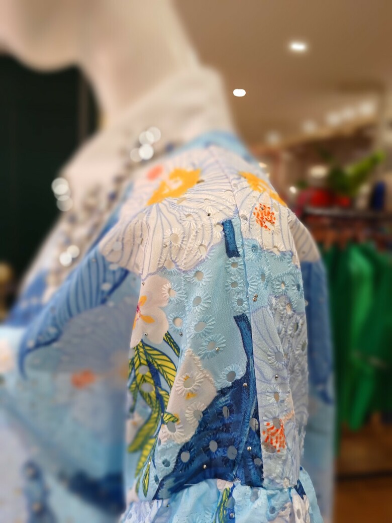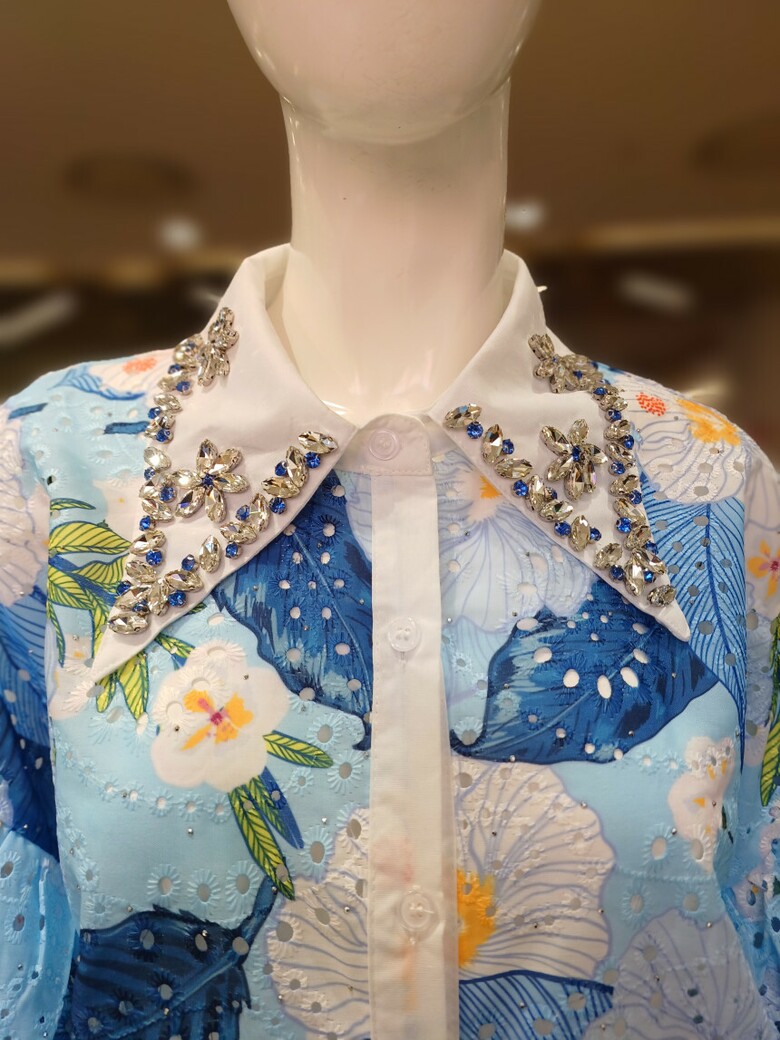 카라넥 보석이 포인트를 주었으며 전면 자수 펀칭이 되어