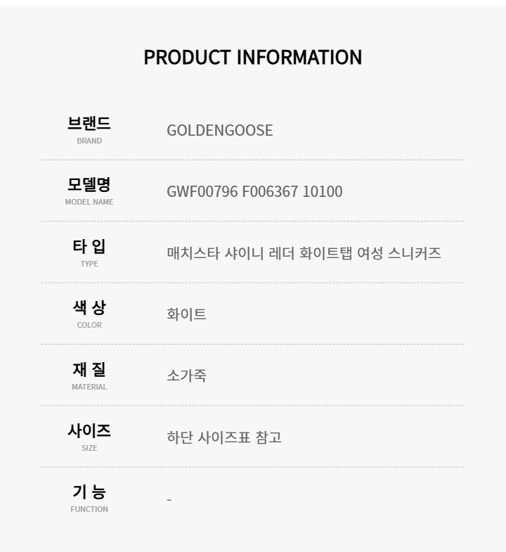 - #리본즈코리아 #GWF00796F00636710100 #[명품] #골든구스 #GWF00796 #F006367 #10100 #매치스타 #샤이니 #레더 #화이트탭 #스니커즈 #여성 #슈즈 #로우탑스니커즈
