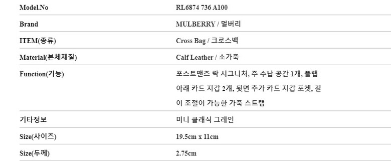 [명품] 멀버리 RL6874 736 A100 안토니 그레인 미니 크로스백