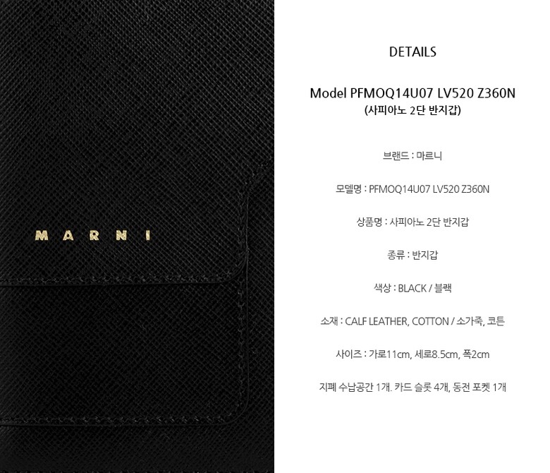 [명품] 마르니 PFMOQ14U07 LV520 Z360N 사피아노 2단 반지갑