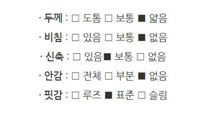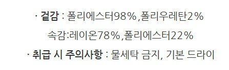 | 1. 제품 소재 (섬유의 조성 또는 혼용률을 백분율로 표시, 기능성인 경우 성적서 또는 허가서) | 폴리에스터98%,폴리우레탄2% |