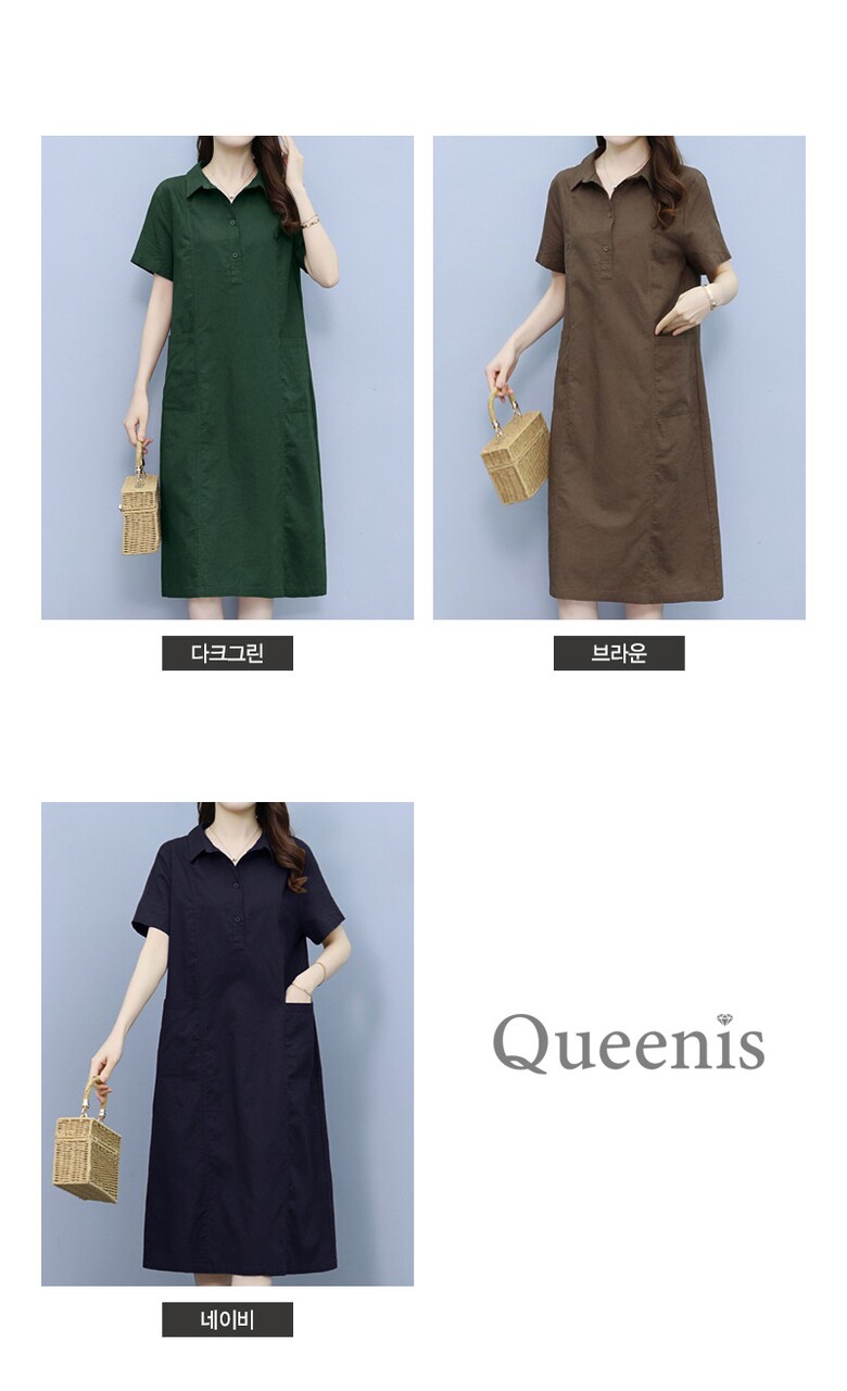 [~88까지]라네프 라인커버 버튼 카라 원피스