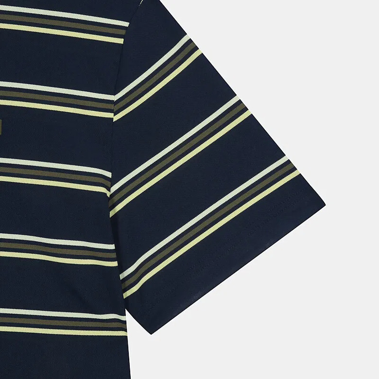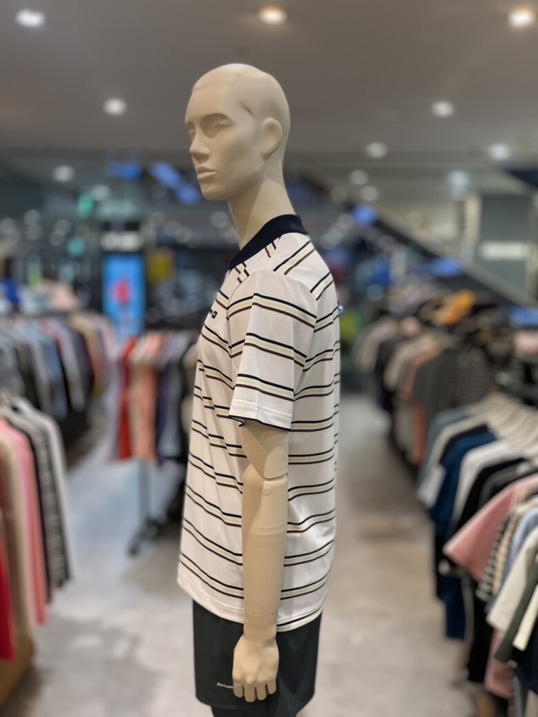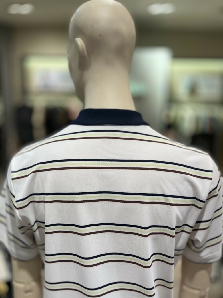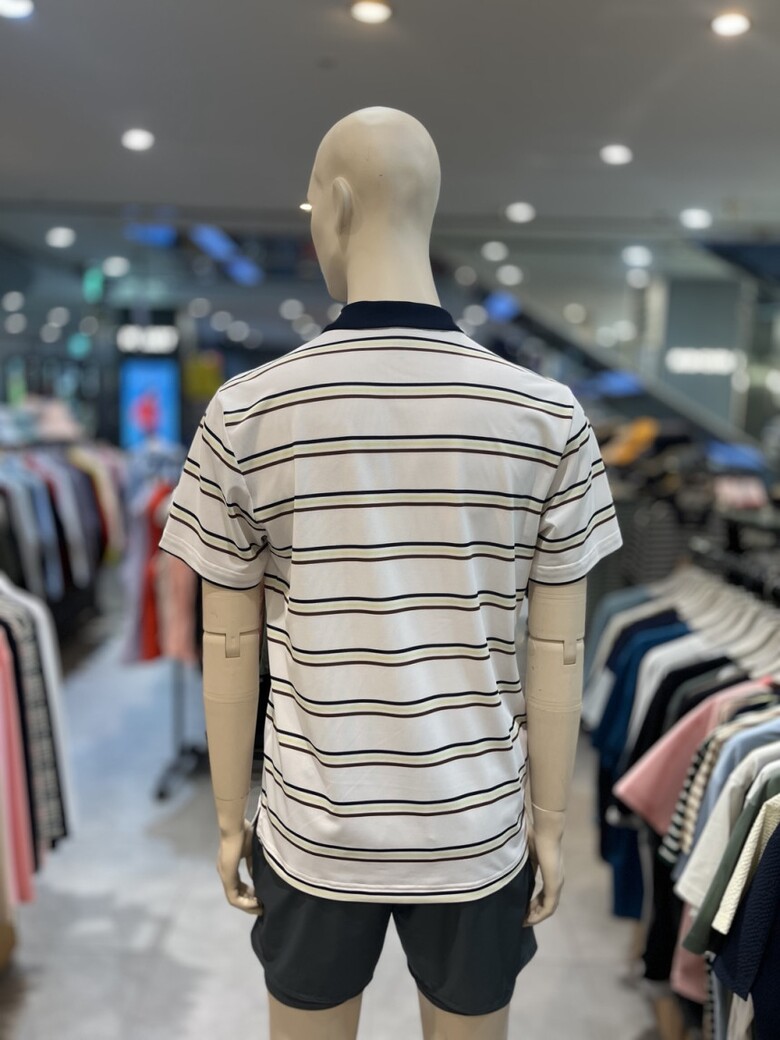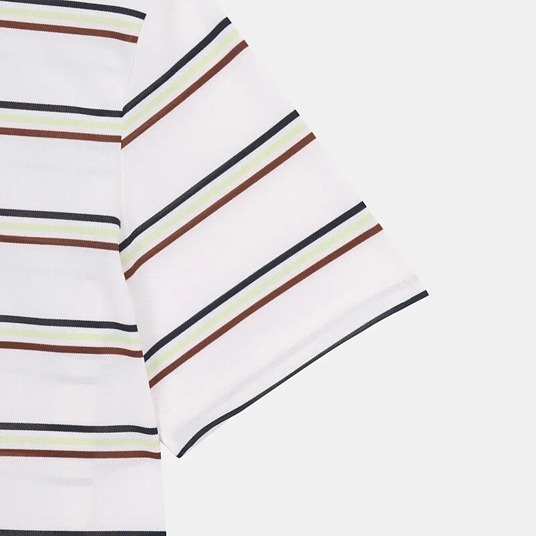 - 피케조직의 멀티 컬러 스트라이프 소재의 반팔 폴로 티셔츠