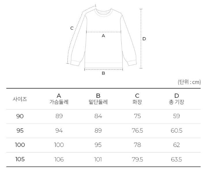 사이즈 단위는 cm이며,재는 위치에 따라 1~3cm사이즈 오차가