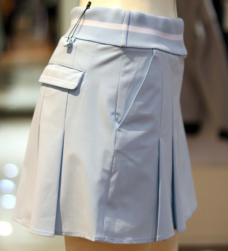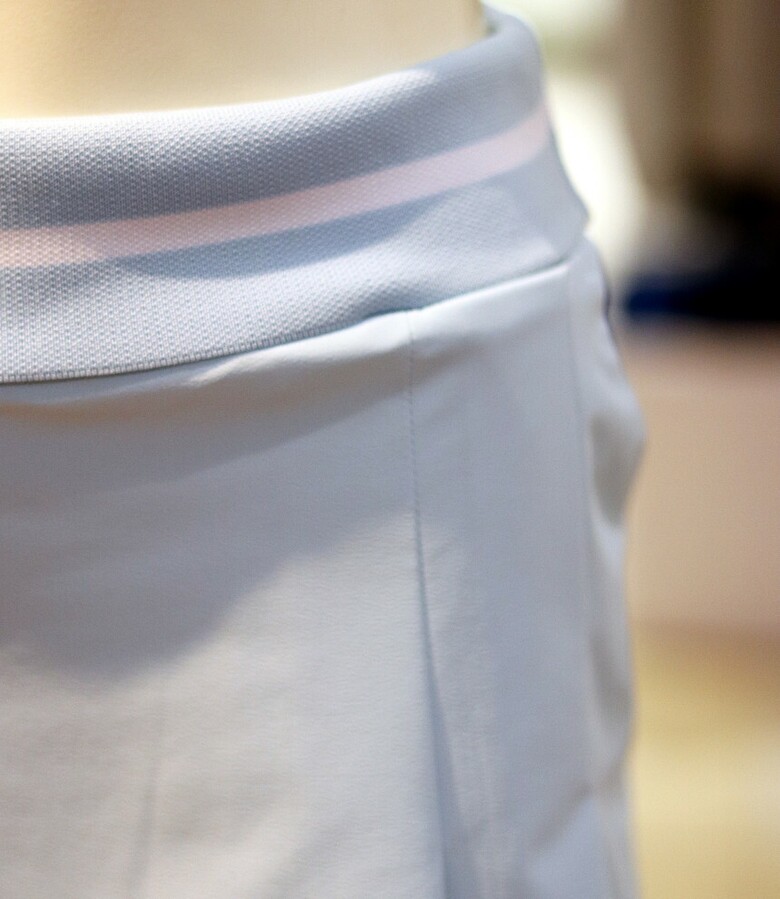 허리에 니트 밴드와 사이드 플리츠 주름을