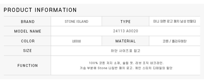[명품] 스톤아일랜드 24113 A0020 811524113 미니 와펜 로고 패치 남성 반팔티