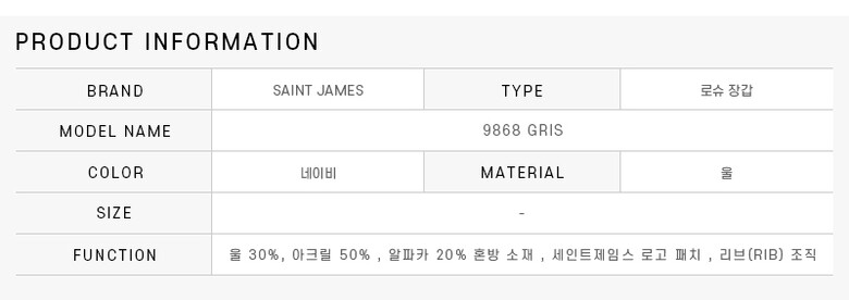 [명품] 세인트제임스 9868 NAVY 로슈 장갑