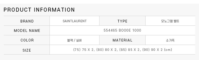 [명품] 생로랑 554465 BOO0E 1000 카산드라 모노그램 스퀘어 은장 벨트