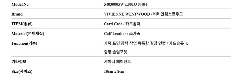 - #리본즈코리아 #54030005WL001ON404 #[명품] #비비안웨스트우드 #54030005W #L001O #N404 #샤이니 #페이턴트 #카드지갑 #여성 #지갑 #카드/명함지갑 #카드지갑홀더