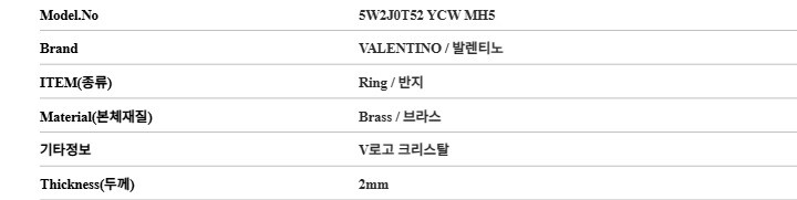 [명품] 발렌티노 5W2J0T52 YCW MH5 J0T52 YCW MH5 가라바니 V로고 크리스탈 반지