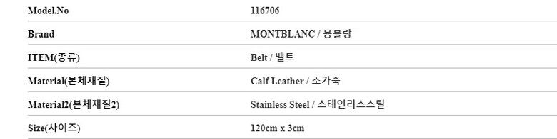 [명품] 몽블랑 116706 사다리형 블랙 유광 벨트