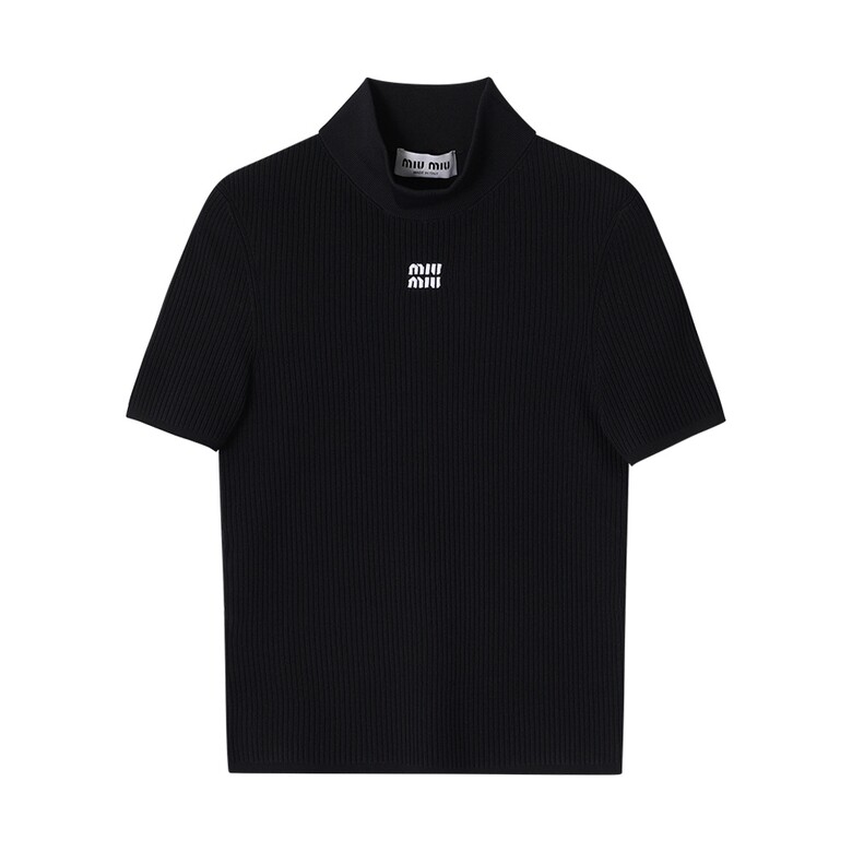 [명품] 미우미우 MMR440 15BR F0002 인타르시아 로고 반팔 터틀넥 여성 니트