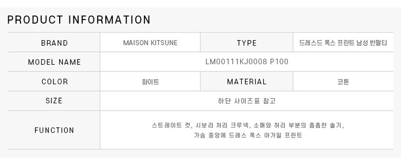 [명품] 메종키츠네 LM00111KJ0008 P100 드레스드 폭스 프린트 남성 반팔티