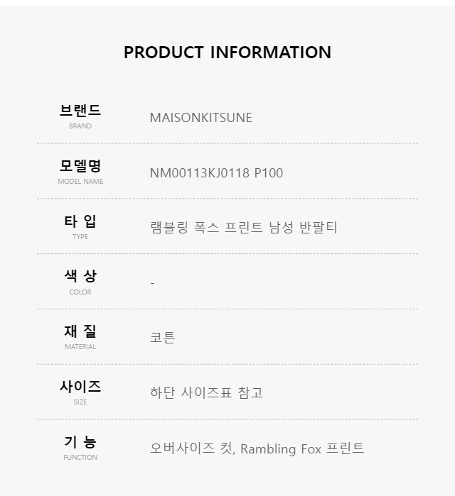 - #리본즈코리아 #NM00113KJ0118P100 #[명품] #메종키츠네 #NM00113KJ0118 #P100 #램블링 #폭스 #프린트 #남성 #반팔티 #의류 #상의 #티셔츠
