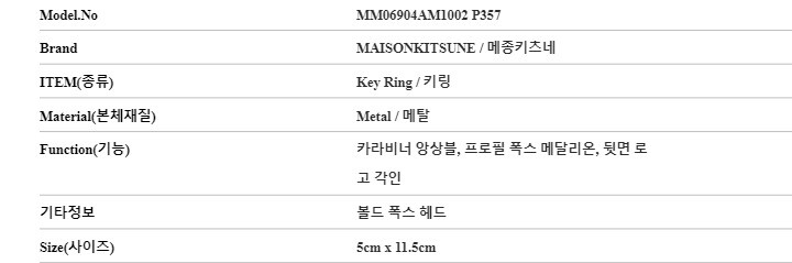 | 3. 치수 | 상세페이지 참조 |