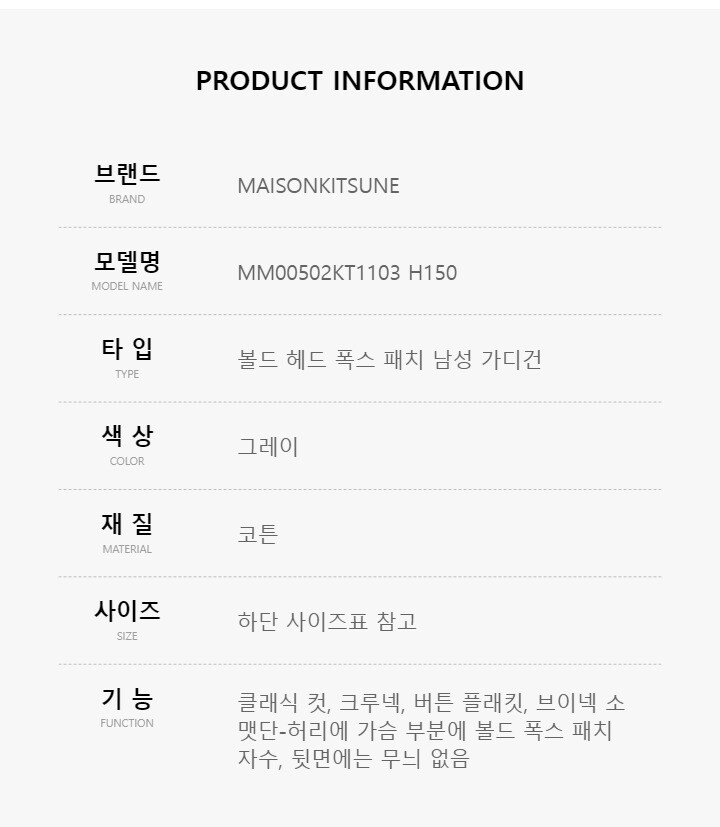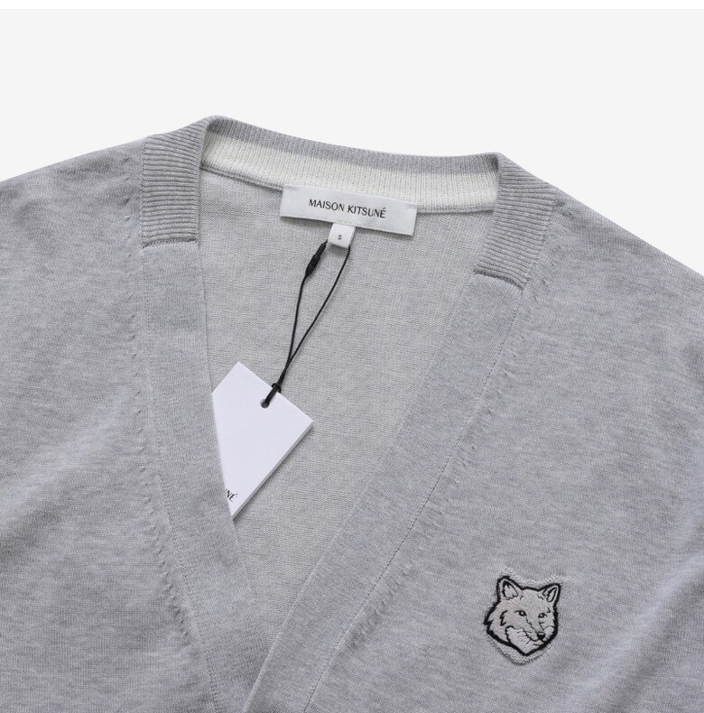 - #리본즈코리아 #MM00502KT1103H150 #[명품] #메종키츠네 #MM00502KT1103 #H150 #볼드 #폭스 #헤드 #패치 #브이넥 #남성 #가디건 #의류 #니트/가디건