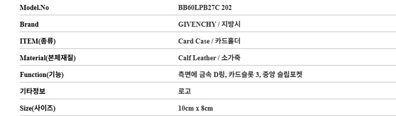 [명품] 지방시 BB60LPB27C 202 부아유 로고 카드지갑