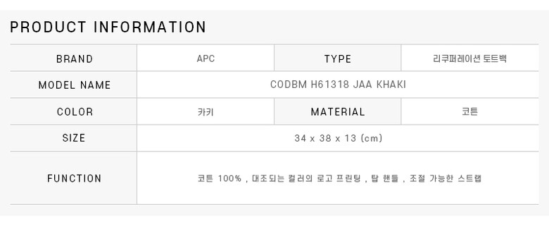 #리본즈코리아 #CODBMH61318JAAKHAKI #[명품] #아페쎄 #CODBM #H61318 #JAA #KHAKI #RECOVERY #리커버리 #탑 #핸들 #쇼핑 #토트백 #남성 #가방/핸드백