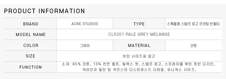 #리본즈코리아 #CL0201PALEGREYMELANGE #[명품] #아크네스튜디오 #CL0201 #PALE #GREY #MELANGE #92H #스톡홀름 #로고 #공용 #반팔티 #남성 #의류 #상의 #티셔츠