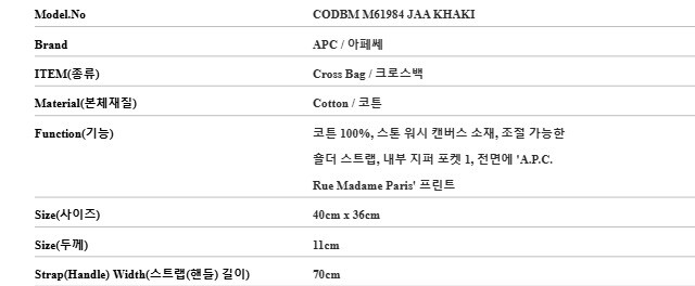 - #리본즈코리아 #CODBMM61984JAAKHAKI #[명품] #아페쎄 #CODBM #M61984 #JAA #KHAKI #RECUPERATION #리쿠퍼레이션 #크로스백 #남성 #가방/핸드백 #크로스/메신저백