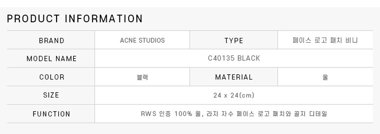 [명품] 아크네스튜디오 C40135 BLACK 900 페이스 로고 패치 비니