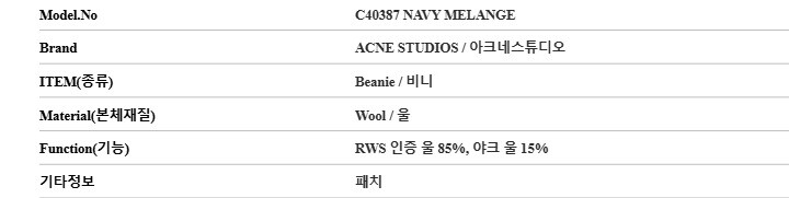 [명품] 아크네스튜디오 C40387 NAVY MELANGE AHE 페이스 로고 패치 비니