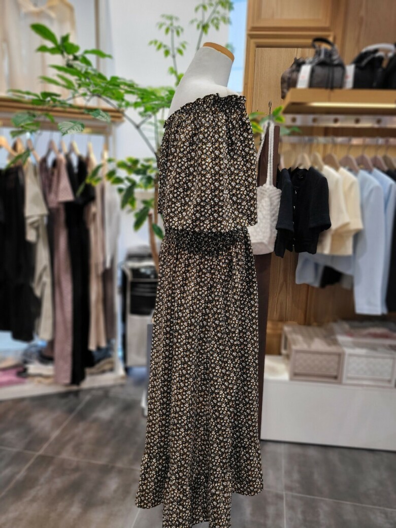 [플라스틱아일랜드]오프숄더 스모킹프린트원피스 PQ2WO583