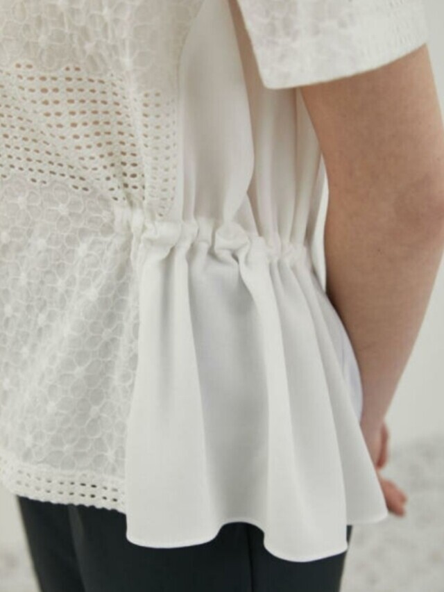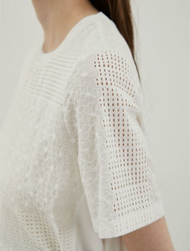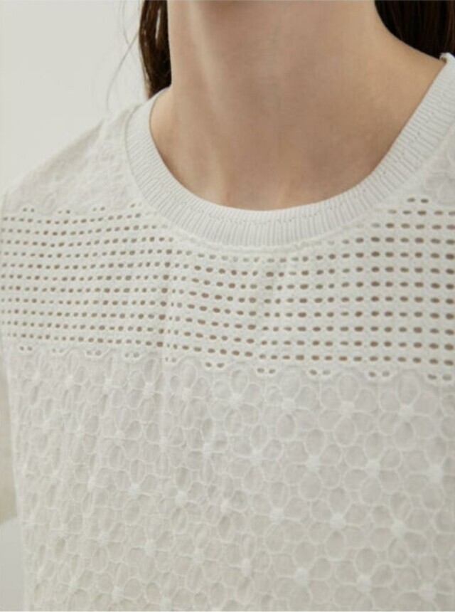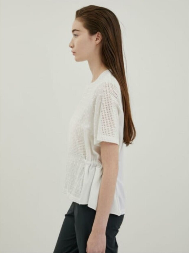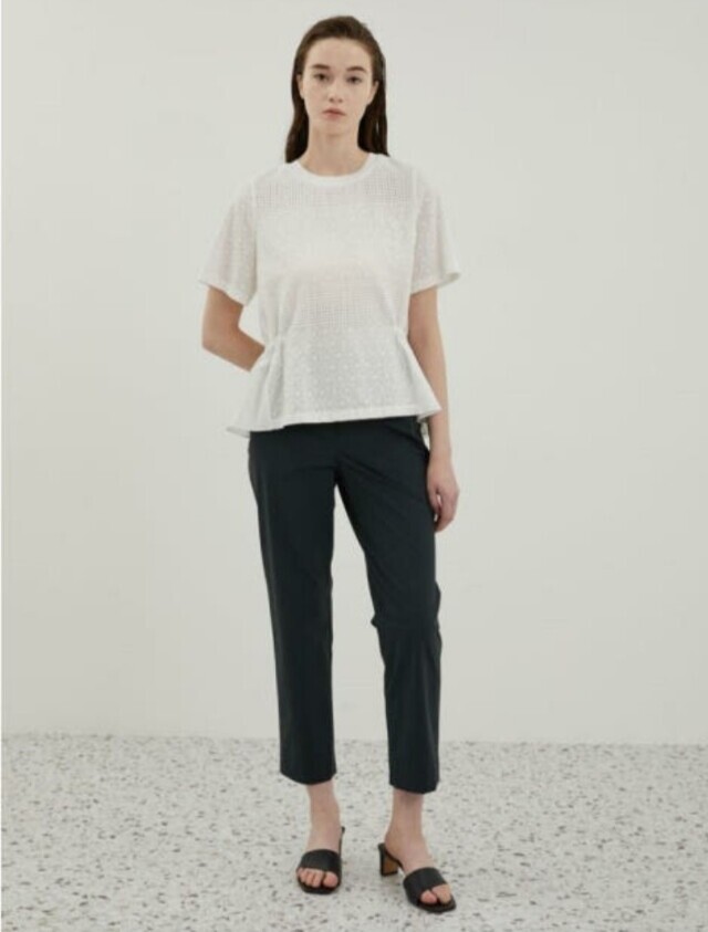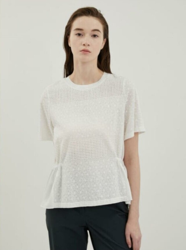 [올리비아로렌]펀칭 반팔 티셔츠VOCAS4M4111